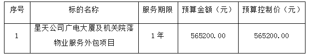 1、采购项目名称:星天公司广电大厦及机关院落物业服务外包项目