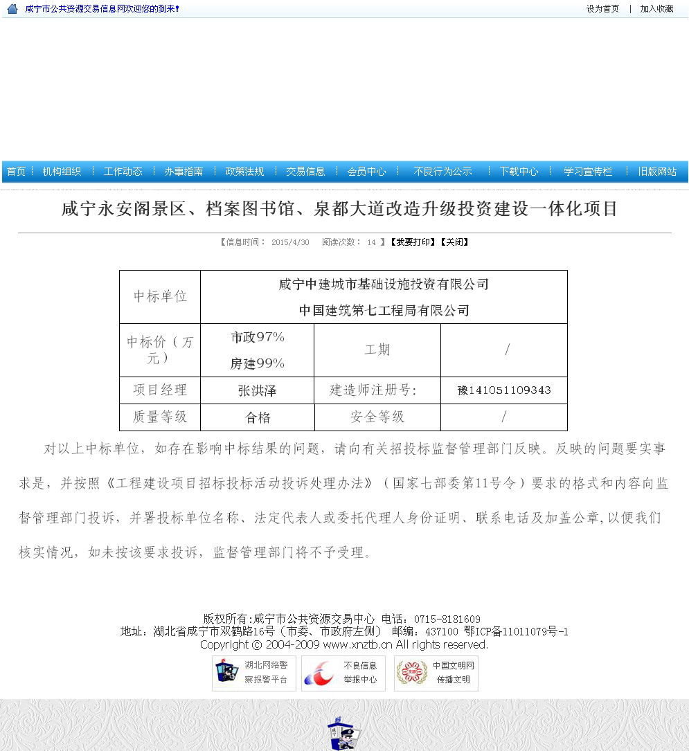 咸宁永安阁景区、档案图书馆、泉都大道改造升级投资建设一体化项目