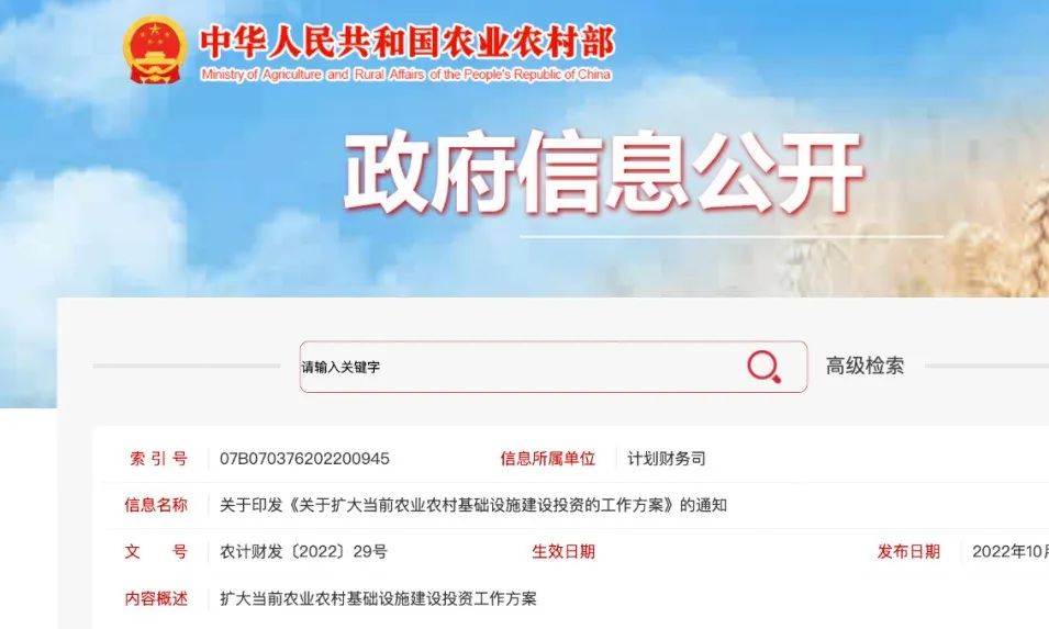 4.农业农村部《关于扩大当前农业农村基础设施建设投资的工作方案》的通知