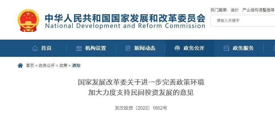 1.国家发展改革委发布进一步完善政策环境加大力度支持民间投资发展的意见