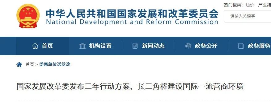 4.国家发展改革委印发《长三角国际一流营商环境建设三年行动方案》