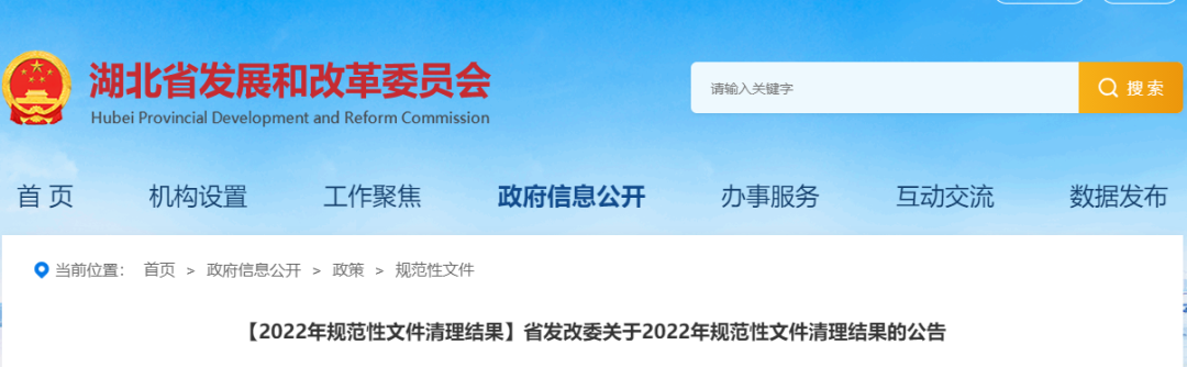 1.湖北省发改委关于2022年规范性文件清理结果的公告