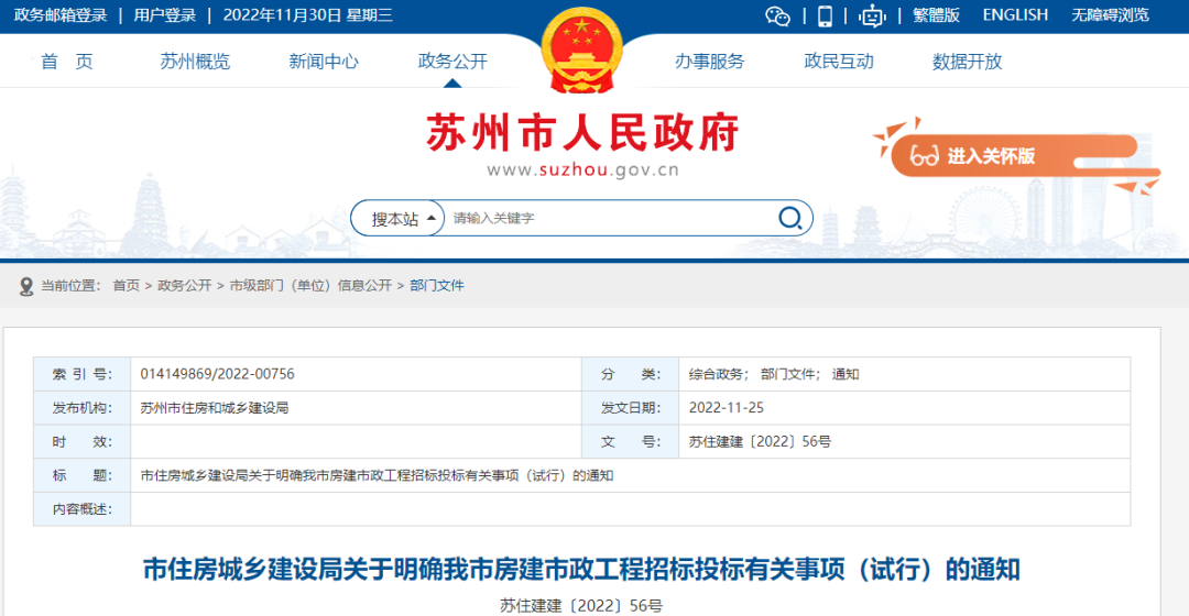 近日,苏州市住房城乡建设局发布关于明确我市房建市政工程招标投标有关事项(试行)的通知,一是明确“评定分离”确定中标人的程序,招标人应在招标前,将确定“评定分离”方案作为“三重一大”事项进行集体研究。采用“评定分离”确定中标人的招标项目,评标办法、定标因素、定标方案及要求投标人提供的材料应当在发布招标公告时同时发布。二是明确资格预审项目招标人选择投标人相关事项,评选因素应具体、明确、体现竞争性,不得含有地方保护、市场分割、指定交易等妨碍统一市场和公平竞争的内容。三是加强招投标的核查、通报、监督,招投标活动中投标人拟派项目管理团队人员配备情况将列入苏州市建筑业企业投标行为及标后履约考评内容,每季度予以公布。