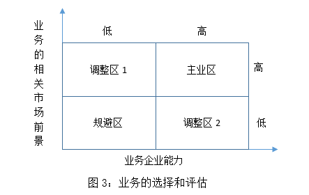 主业区是城投公司发展追求的目标,公司在该业务上具有较强的能力,同时该业务又有非常好的增长前景。如果出现在主业区的业务越多,业务之间差别又不太悬殊,公司可选择采用较高维度的多元化模式。