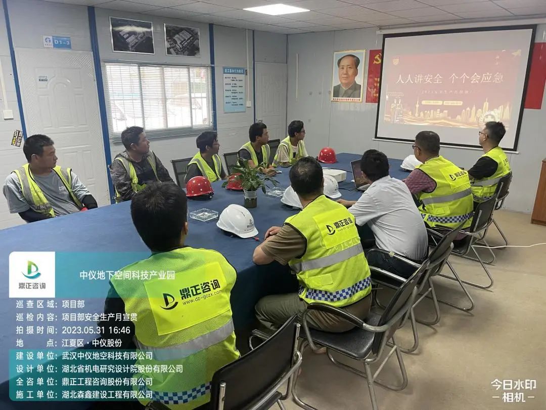 5月31日,鼎正项目管理事业部在中仪地下空间科技产业园项目组织“安全生产月”主题学习,项目管理事业部副经理张力主持会议,他指出,安全责任重于泰山,全体人员要深入贯彻习近平总书记关于安全生产的讲话精神,持续深入学习安全生产“十五条措施”,从严从紧落实“第一责任人”责任,坚决防范生产安全事故发生。