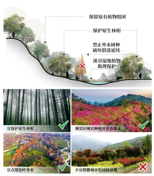 1.林地保护:少砍树、慎挖树、秀乔木、增色彩