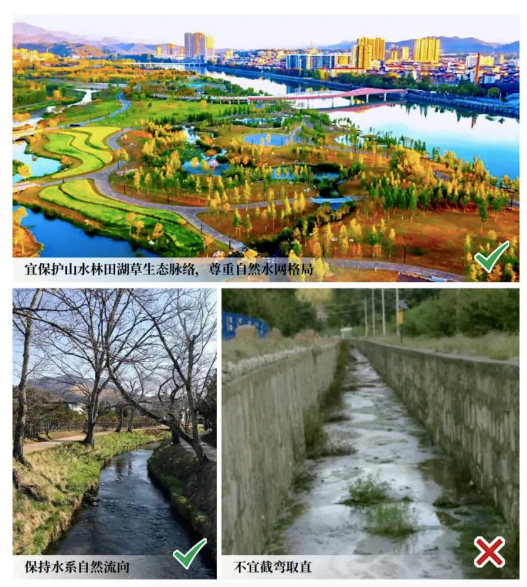 山区沿山脚,平原滨水域,慎挖慎填融自然