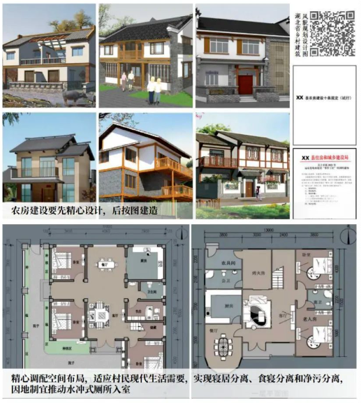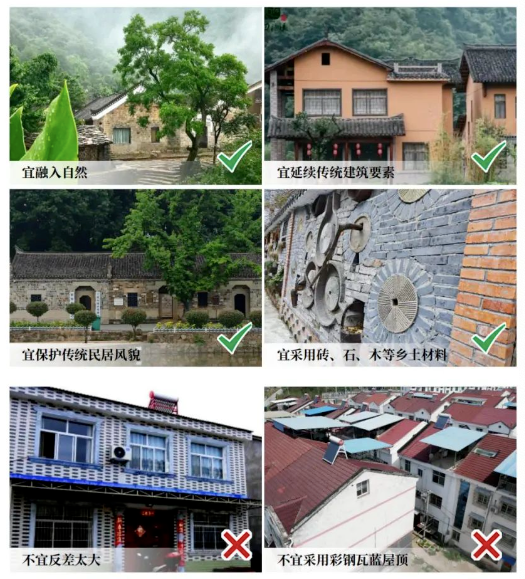 以县域为单元,总结本土民居建筑语言,编制农房建设标准图集。满足现代功能需求,力求“南北通风、四面采光、简洁实用”。鼓励就地取材,培育带头工匠,传承乡土工艺。