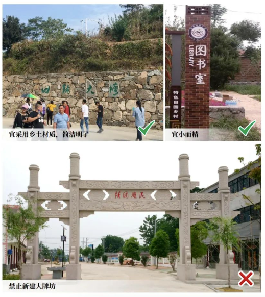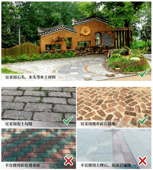 宜就地取材(石、竹、木、砖),凸显乡情