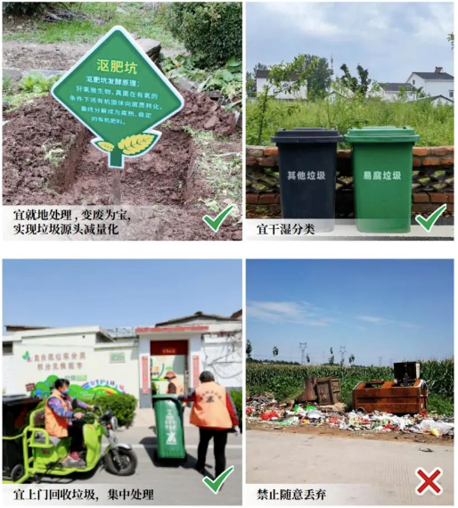 宜干湿分类;不宜混合投放(一坑两桶三上门)