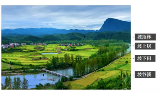 坡顶林、坡上居、坡下甜、坡谷溪