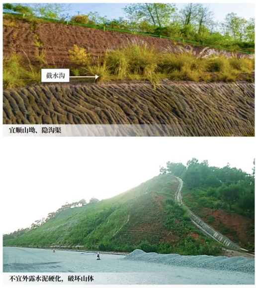 沿坡脚、修明渠、植草沟