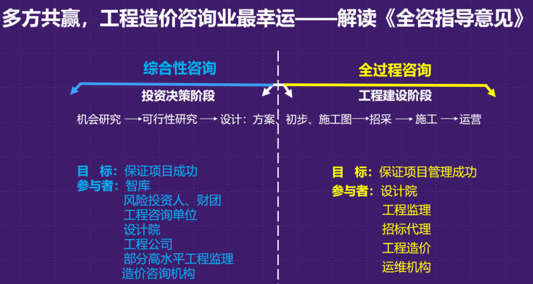 在总书记全生命周期管理思想的指导下,中国的“全咨”已经由“全过程工程咨询”过渡到“全生命周期工程咨询”,进入了全咨3.0时代。全咨3.0要点是全咨边界向前扩展到“招商引资”,向后延伸至“运营维护”。