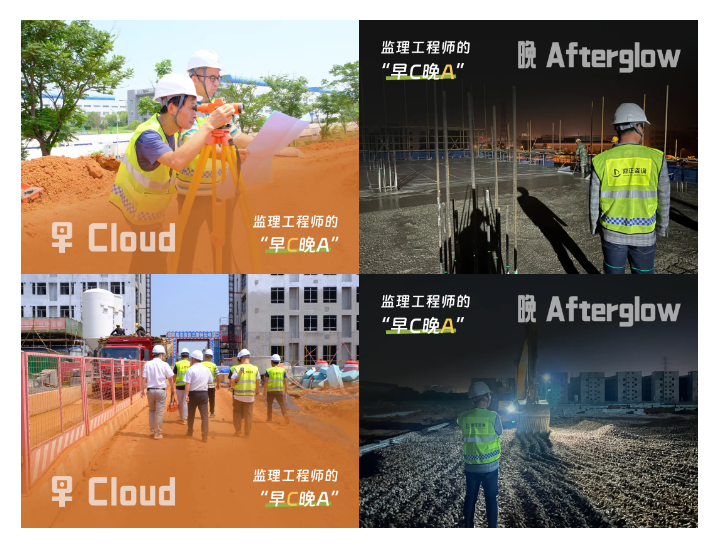 早:天还未亮,监理工程师,已经到达施工现场。迎着Cloud(蓝天白云),开启第一轮现场巡查,头戴安全帽,手夹施工图,一边巡查一边记录。