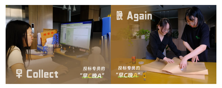 早:晨光微曦,投标人马不停蹄开启工作模式。分析招标文件,Collect(收集)业绩、证书、资质等原件资料,编制投标方案。核对审查投标内容。