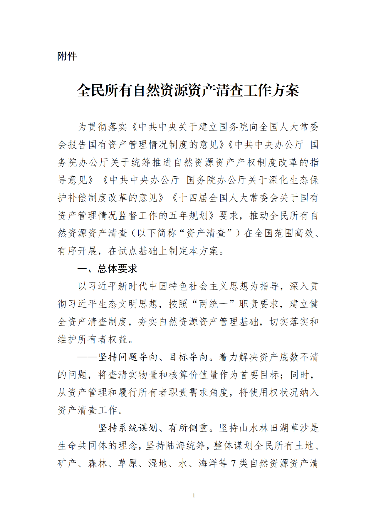 现将《全民所有自然资源资产清查工作方案》印发你们,请认真组织实施。工作中遇到重要情况和问题请及时报告。