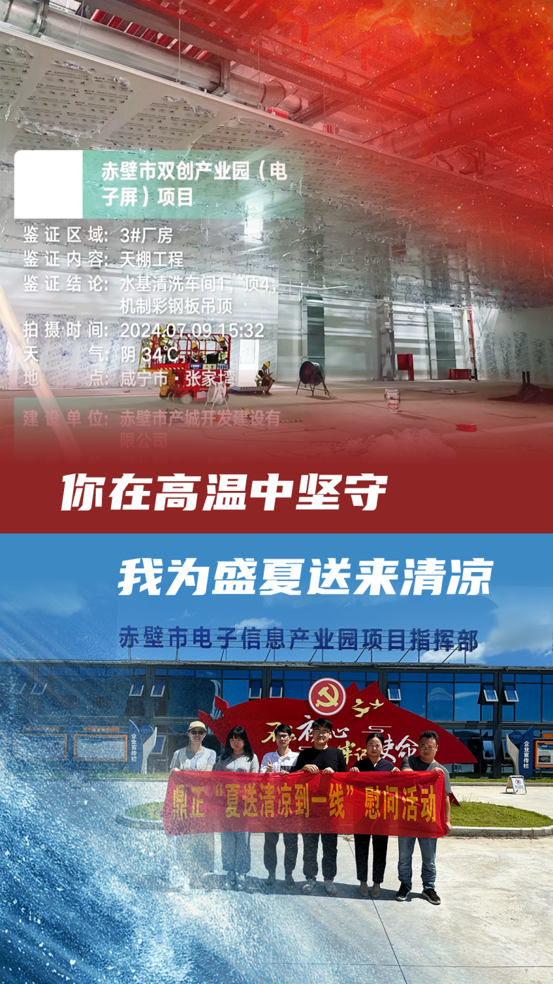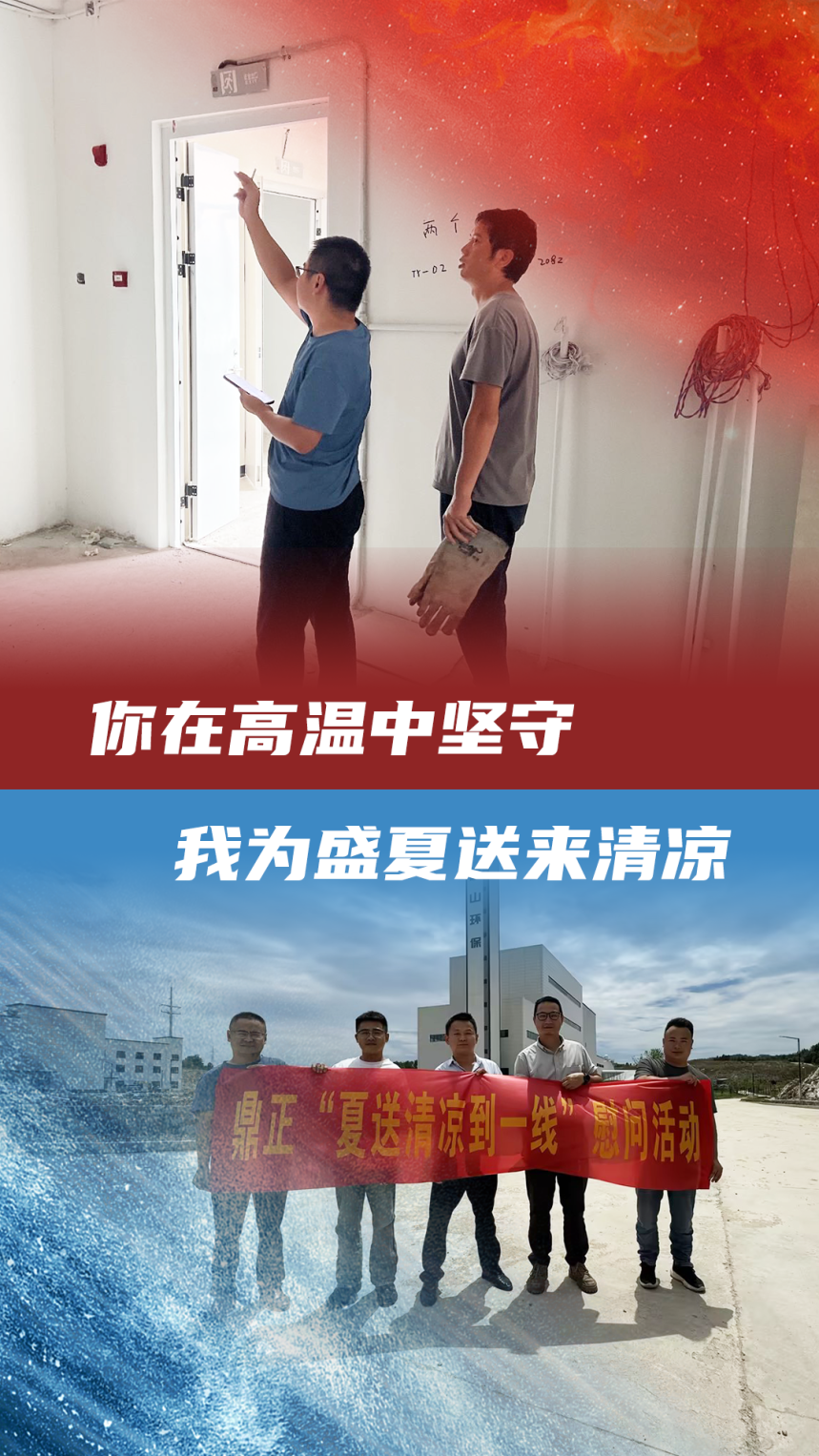 7月4日,鼎正副总经理程正一带队,前往高温作业外场开展防暑降温保障工作,为驻场同事送上清凉饮品和防暑降温药品,并叮嘱大家合理调整高温作业和休息时间,注意劳逸结合。