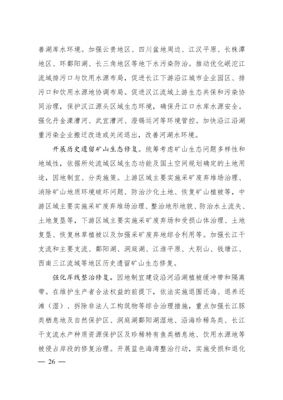 保障战略性矿产资源开发空间,加大长江流域能源资源基地和国家规划矿区建设,支持绿色勘查、绿色开发。
