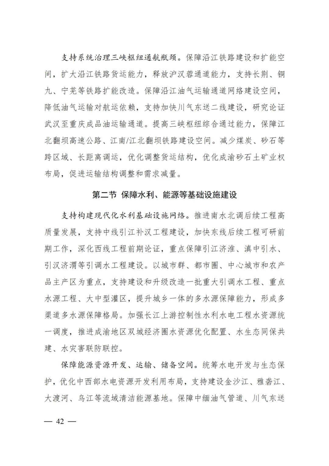 保障沿江油气运输通道网络建设空间,降低油气运输对航运依赖,支持加快川气东送二线建设,研究论证武汉至重庆成品油运输通道。