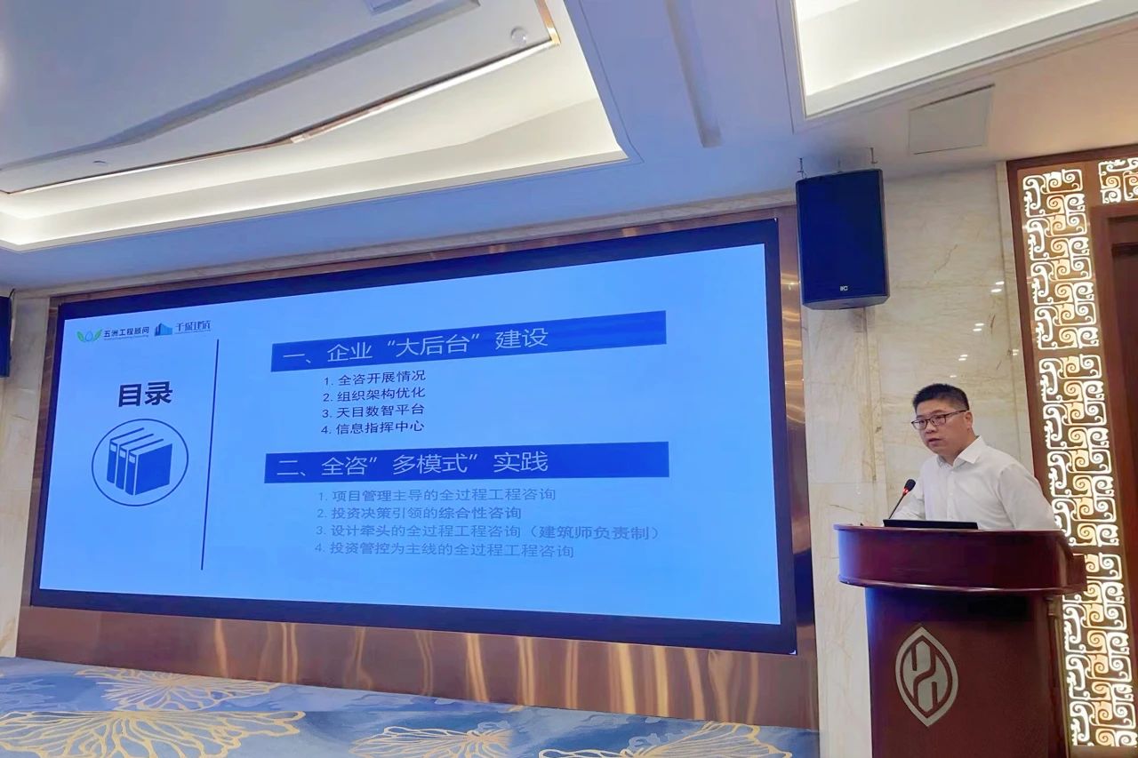 五洲工程顾问集团有限公司执行总经理柴恩海做了《全过程工程咨询探索实践》的主题报告,基于行业全咨标杆企业转型发展的实际,详细介绍了公司全咨“大后台”建设和全咨模式的实践两个方面的做法和经验,以及通过数字化平台建设,赋能全咨业务发展,并对当前全咨发展提出了相关建议。