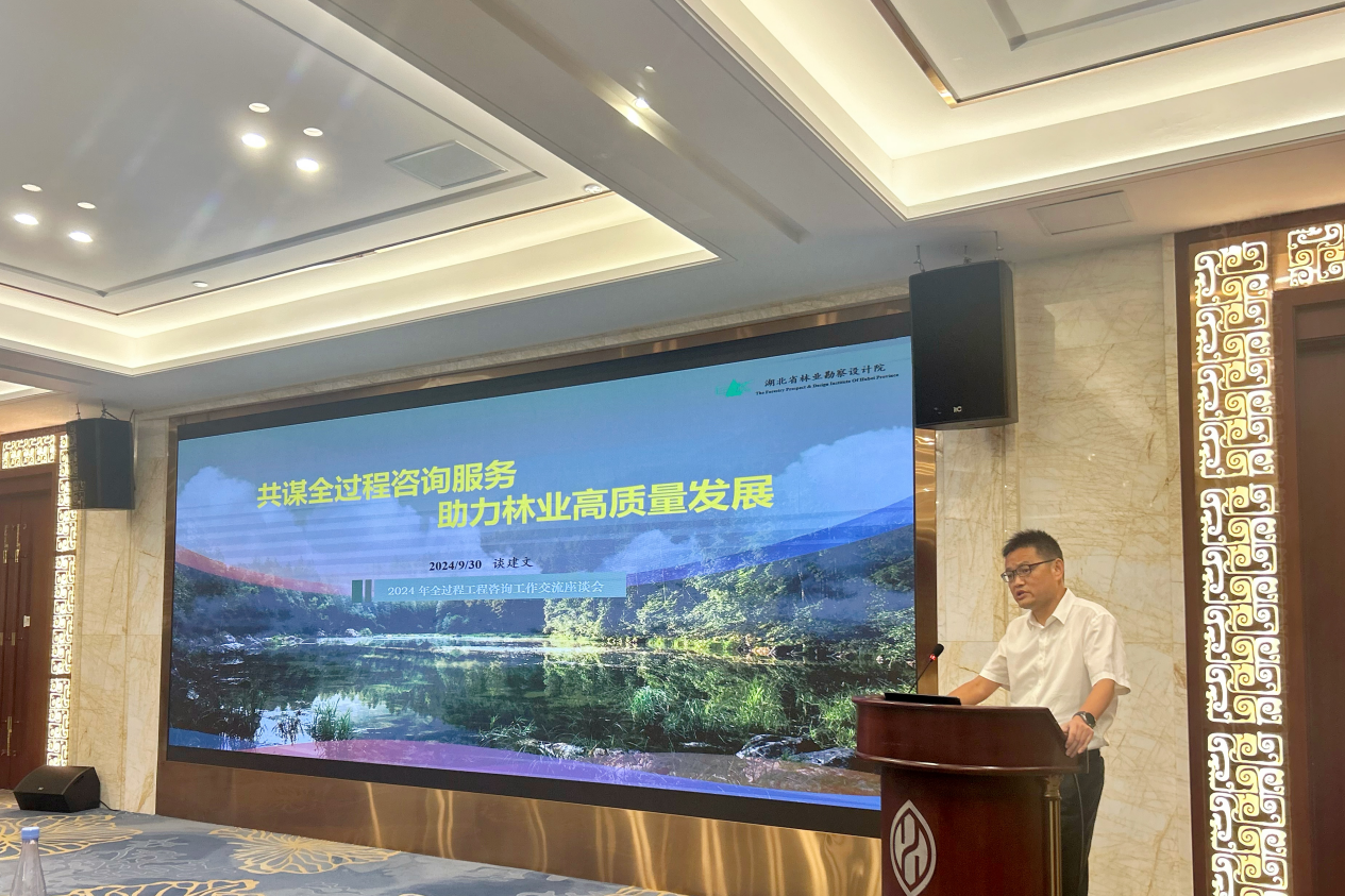 湖北省林业勘察设计院副院长兼总工谈建文从勘察设计视角分享以设计为主线的全过程工程咨询服务模式,打造“对林业生态项目建设效果负责”的核心咨询管理能力,并做了《共谋全过程咨询服务,助力林业高质量发展》的主题分享。