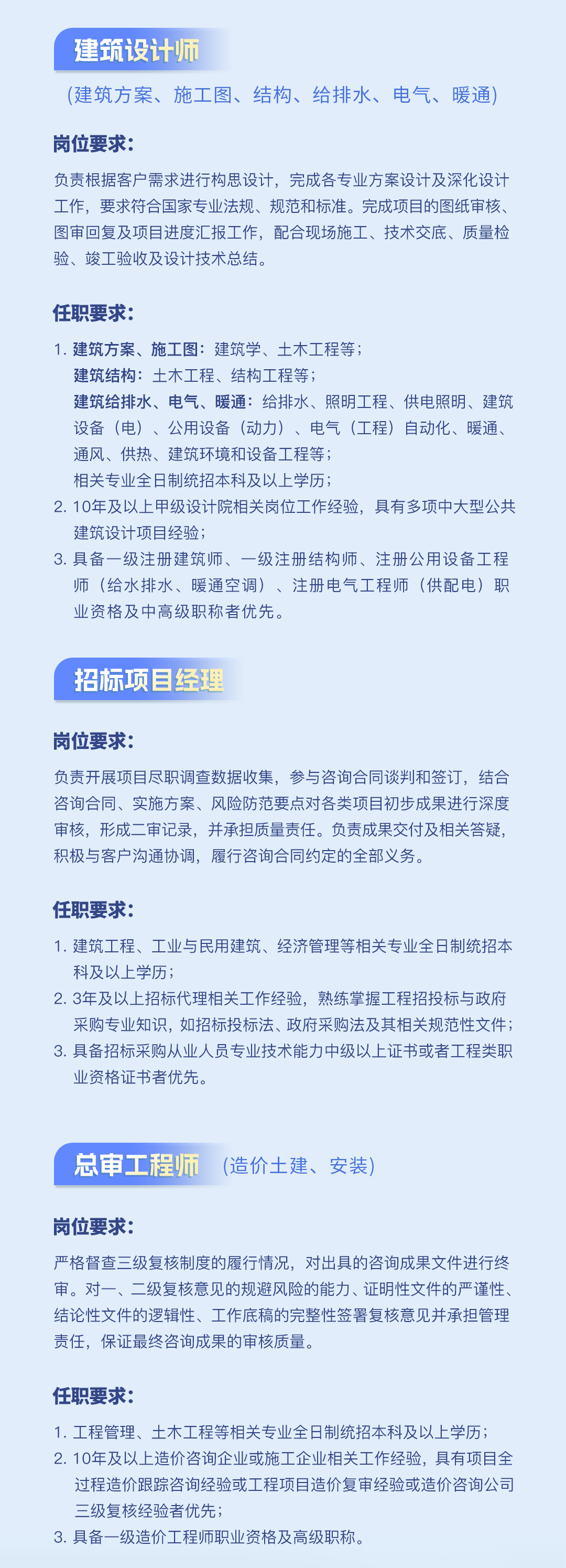 公司下设工程咨询事业部、招标代理事业部、工程造价咨询事业部、规划设计事业部等机构...