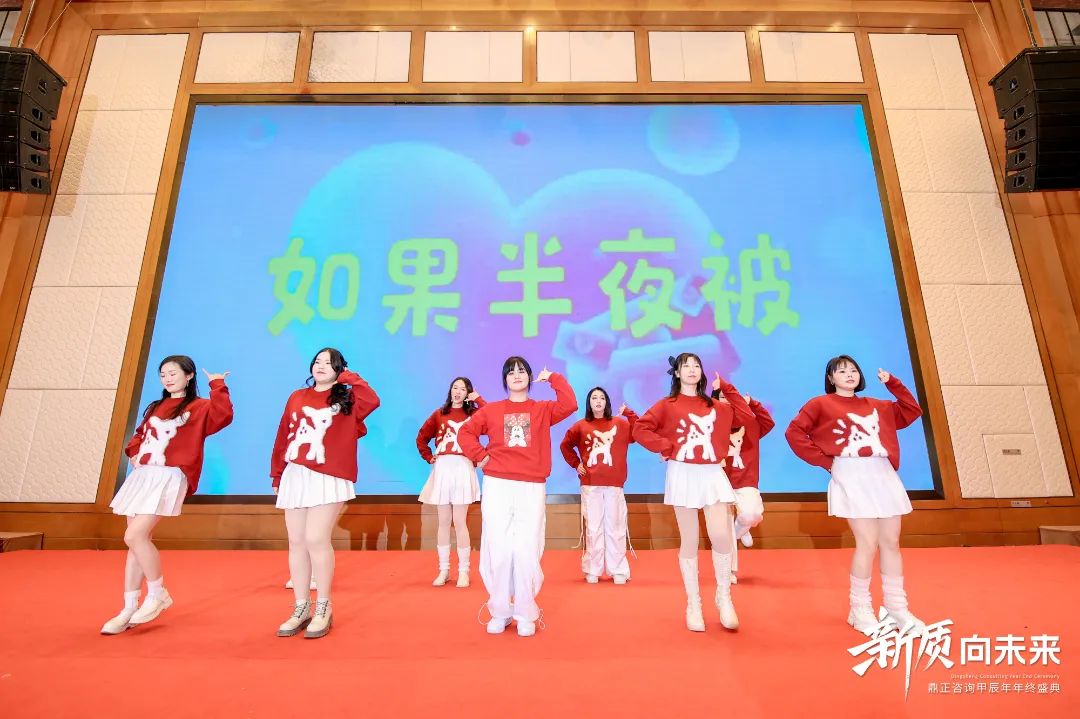 另一边,由信息部、投标部、城市公司发展部、市场部、财务部及造价咨询事业部临时组建的女团,带来了洋溢着青春活力的舞蹈串烧《爱你》+《桃花朵朵开》,展现了别样的风采。