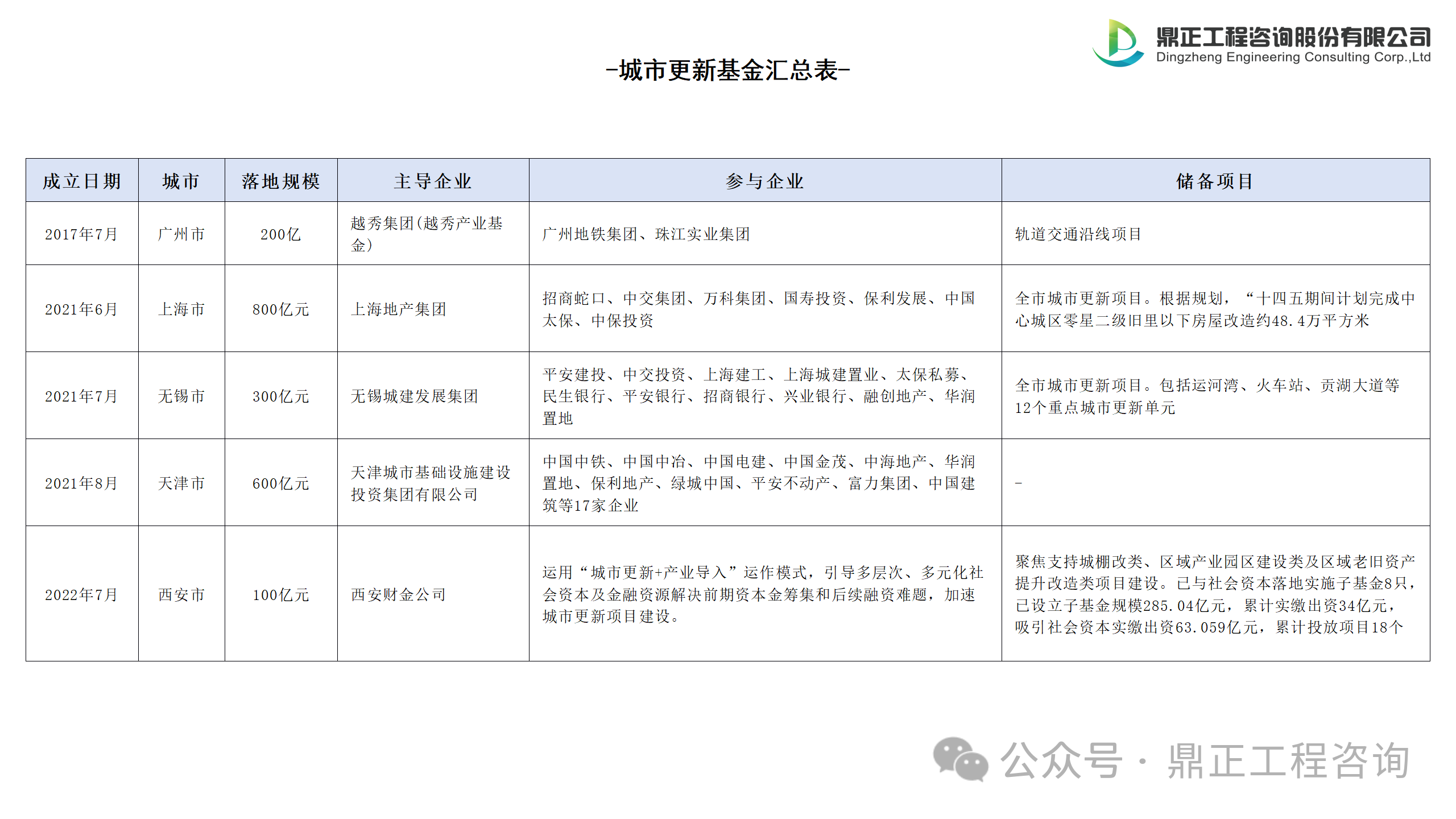 2.城市更新基金投向城市更新基金目前由政府支持,国有企业牵头,联合社会资本设立城市更新基金,成为一种新的模式探索。主要服务于片区综合性城市更新项目。城市更新基金的投资人以房地产和建筑施工企业为主,更多聚焦城市更新类型中的老旧小区更新、城中村更新,对于旧工业区更新、历史文化承载区更新项目投资倾斜较少。城市更新基金更多倾向于政府重点推进、资金需求量大,收益回报和退出机制明确的项目。优势是能够整合各方优势资源,多元筹集资本金及实施项目融资,加快项目推进;劣势是目前城市更新投资回报收益水平、期限等与城市更新基金资金的匹配性不强,投资回报附加要求多,退出机制不明确,面临实施上的诸多挑战。