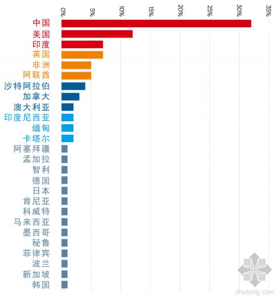 中国仍然得到了最多的“增长最快预期”(32%)(见后表),尽管这两年随着北京政府紧缩房地产,中国市场出现了一定程度的下滑。澳大利亚公司Woods