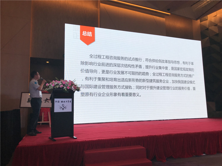 在主题演讲环节中,我司董事长王雁然从风口下的造价咨询企业发展观察、全过程工程咨询服务的演变、全过程工程咨询服务的核心价值、全过程工程咨询服务的实现路径、鼎正工程咨询的探索与实践五个部分全面详实的针对全过程工程咨询的思考与实践发表演讲。