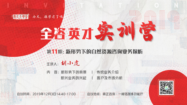 12月3日,全咨英才实训营第十期、第十一期培训于我司一楼珞珈会议室如期开课。参加此次培训的有董事长王雁然、副总经理毛迎霞、技术总监朱立冬等领导以及公司各事业部的同事们,部分分公司的同事们也远程参与到此次培训中。