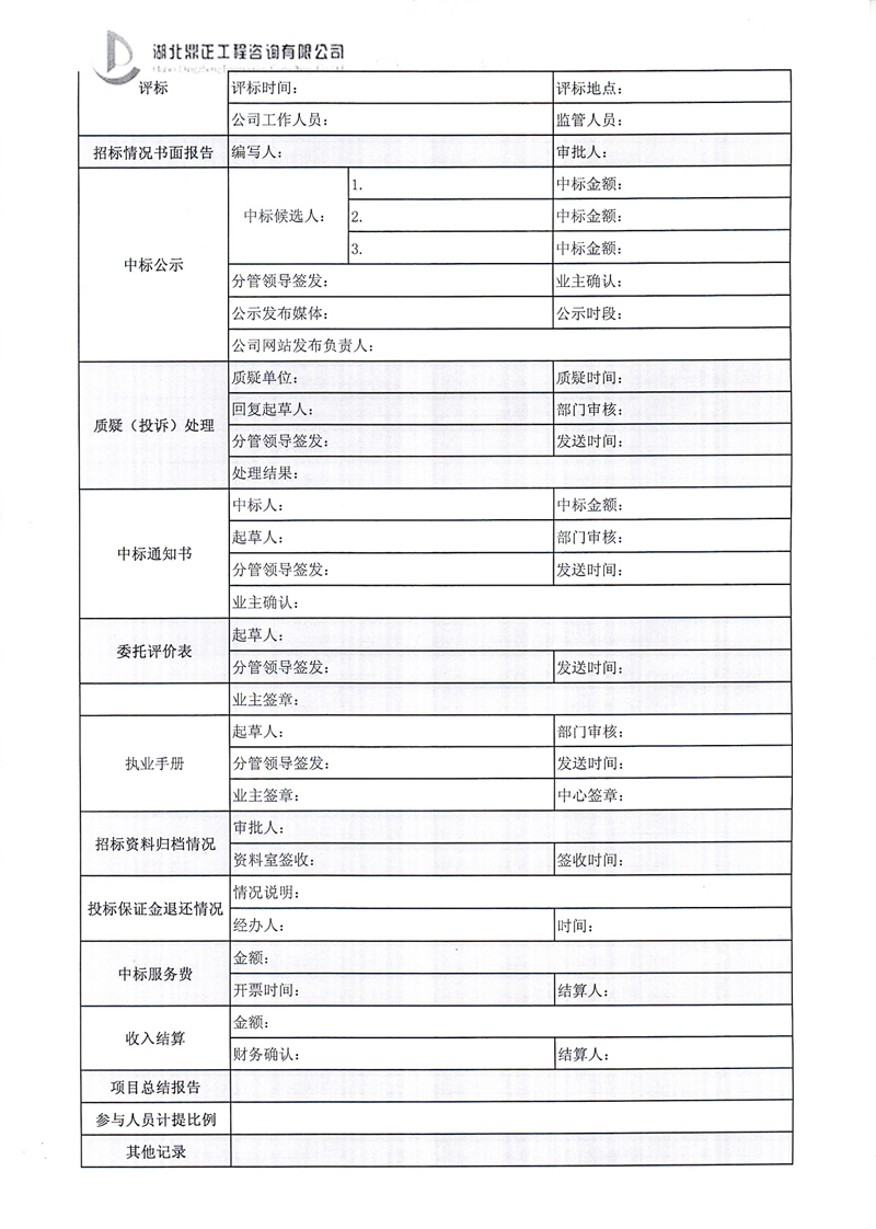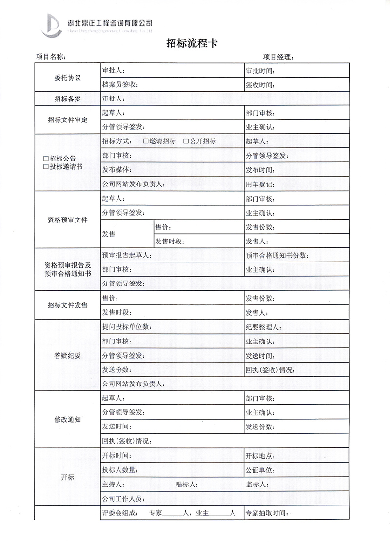 招标业务操作流程卡