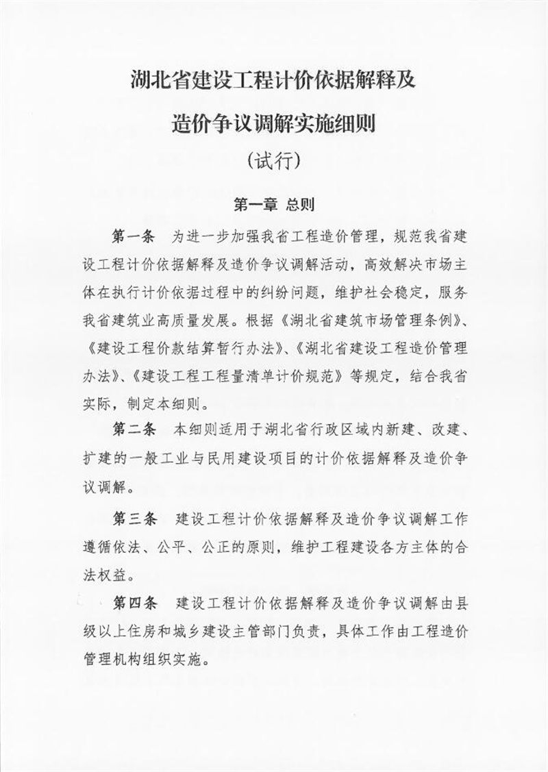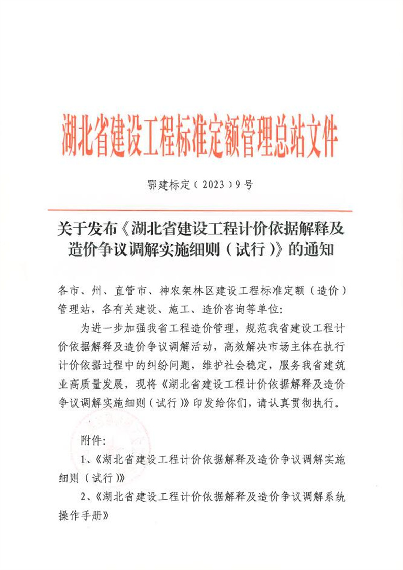 转发关于发布《湖北省建设工程计价依据解释及造价争议调解实施细则(试行)》的通知